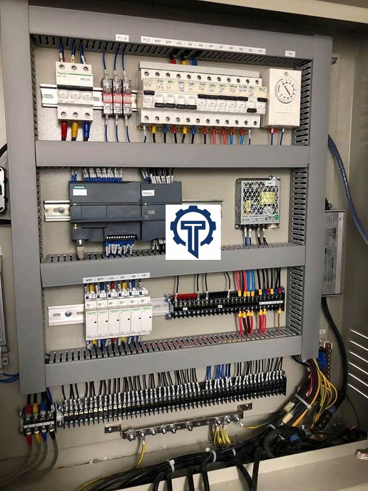 – Nguồn điện chính: CB/Công tắc Đóng/Ngắt nguồn điện cung cấp vào tủ điện, đèn báo pha, rờ le bảo vệ điện áp.