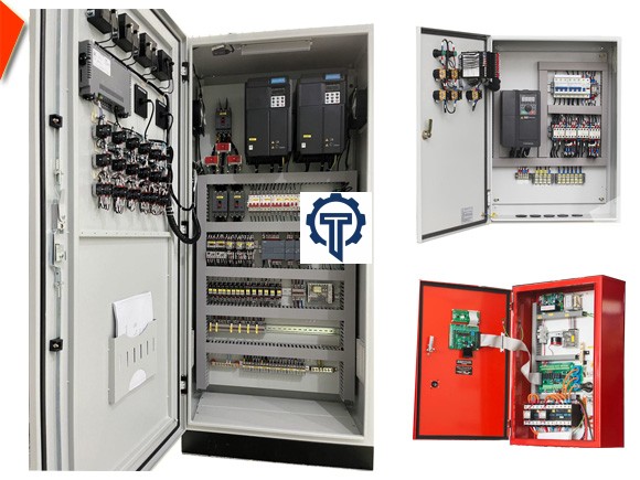 Tủ điều khiển bơm cho phép khởi động và dừng máy bơm theo cách thủ công hoặc tự động theo cảm biến mực nước, áp suất, lưu lượng và điều khiển tốc quay của động cơ bơm theo ý muốn.